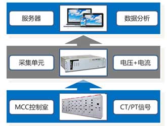 數(shù)據(jù)采集架構(gòu):電流信號(hào)均為標(biāo)準(zhǔn)的5A,在電動(dòng)機(jī)的MCC控制柜儀表測量回路獲取二次電流互感器CT電流信號(hào)。PT信號(hào)獲取方式:高壓信號(hào)電動(dòng)機(jī)電源MCC柜的母線PT上并聯(lián)引入到采集站的電壓采集模塊。690V以下直接獲取。