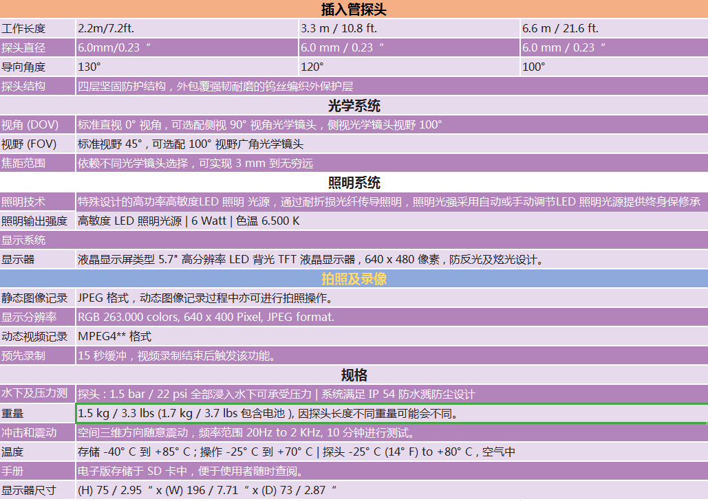 【手持式工業(yè)內(nèi)窺鏡技術(shù)參數(shù)】