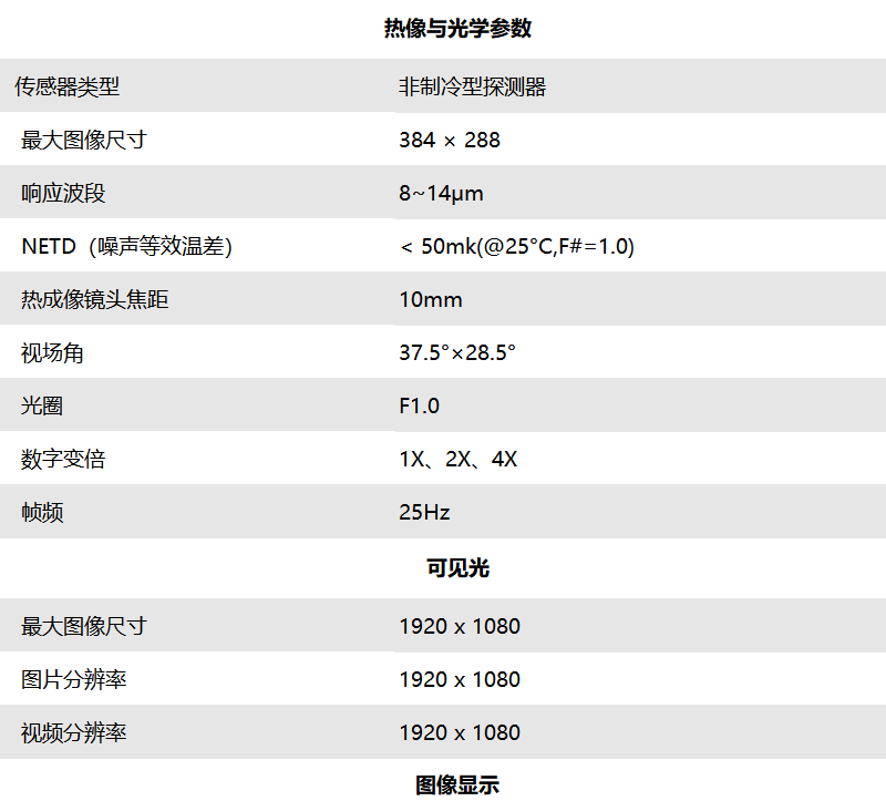 1.圖像尺寸384 × 288,高靈敏度非制冷探測器